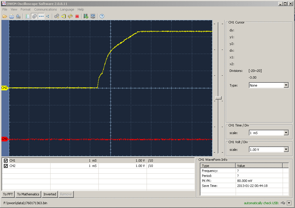 Here is what the start-up behaviour looks with 1k Ohm pull-down